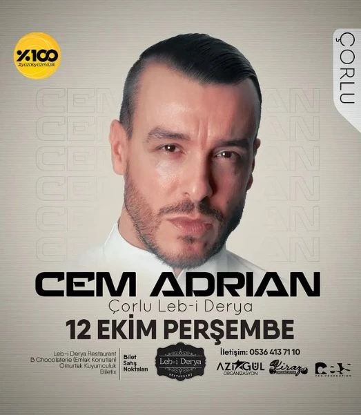 Daha önce Çorlu halkıyla birçok kez bir araya gelen ve kendine has yorumuyla şarkıları renklendiren başarılı sanatçı Cem Adrian sevenleriyle Çorlu Leb-i Derya sahnesinde yeniden buluşuyor.