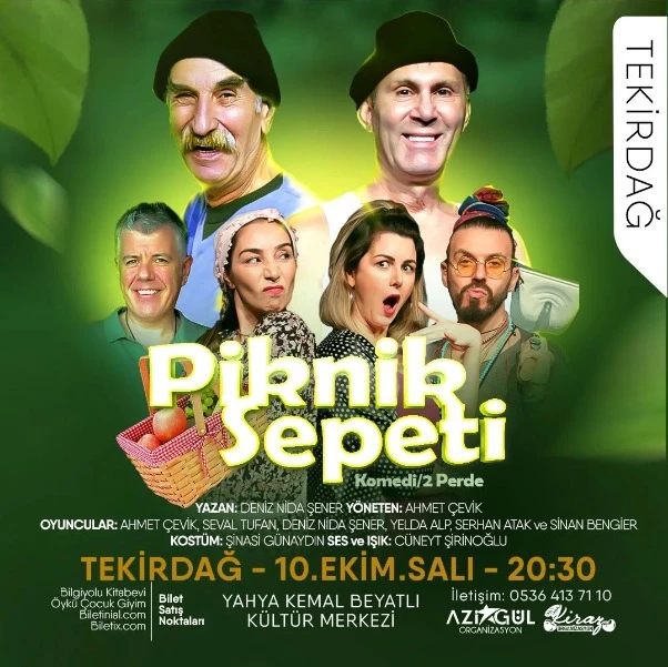 Sinan Bengier, Ahmet Çevik, Yelda Alp, Seval Tufan, Cengiz Güleryüz ve Serhan Atak’ı aynı sahnede bir araya getiren Piknik Sepeti oyunu 10 Ekim Salı saat 20:30’da Tekirdağ Yahya Kemal Beyatlı Kültür Merkezi’nde; 11 Ekim Çarşamba yine saat 20:30’da Çorlu Halk Eğitim Merkezi’nde seyircisiyle buluşacak.
