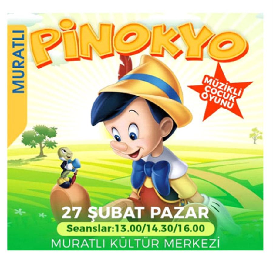 İtalyan yazar Carlo Collodi’nin 1881 yılında yazdığı Pinokyo'nun Serüvenleri adlı çocuk kitabının baş karakteri olan ve daha sonra kitabın değişik türde yapıtlara uyarlanmasıyla pek çok film, animasyon film, tiyatro oyunu, televizyon filminin kahramanı olan Pinokyo bu kez Muratlı’ya geliyor.