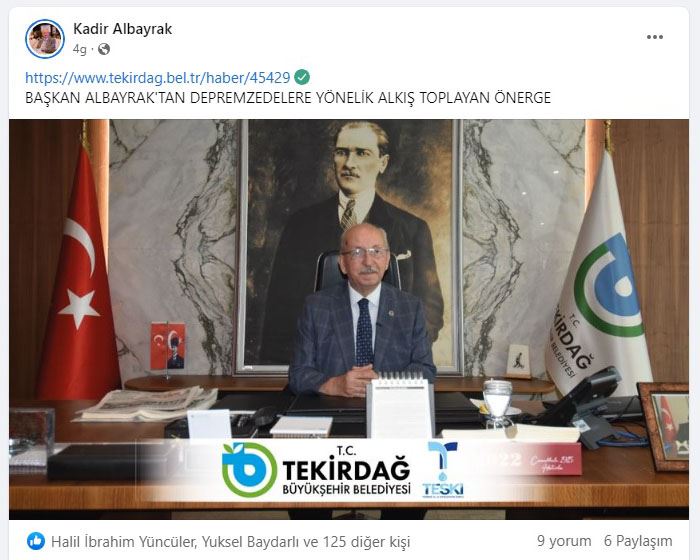 BAŞKAN ALBAYRAK'TAN DEPREMZEDELERE YÖNELİK ALKIŞ TOPLAYAN ÖNERGE