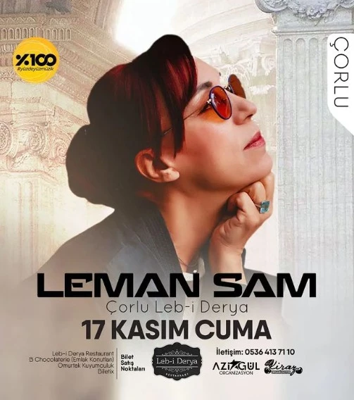 Leman Sam, 17 Kasım Cuma akşamı Çorlu Leb-i Derya Sahnesi’nde birbirinden güzel şarkılarıyla kendisini dinlemeye gelenlerin kulaklarının pasını silecek.