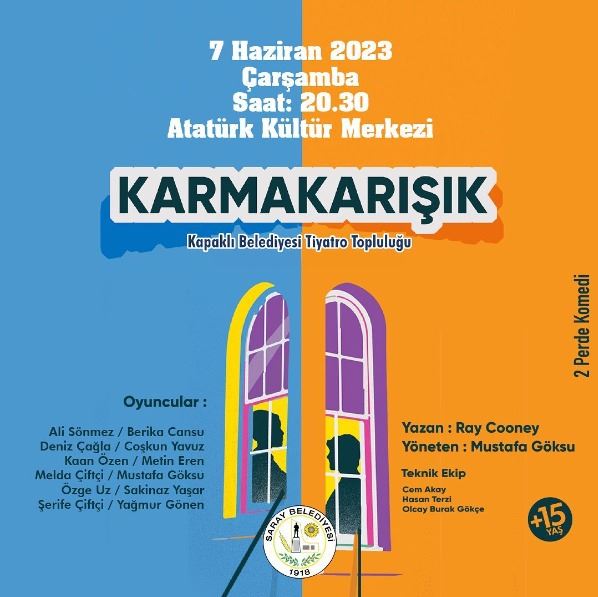 Saray Belediyesi, Roy Conney’in yazdığı ve Kapaklı Belediyesi Tiyatro Topluluğu tarafından sahneye uyarlanan “Karmakarışık” adlı oyunu tiyatro severlerle buluşturuyor.