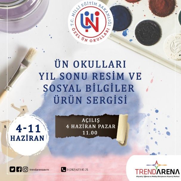 Trakya’nın en çok ziyaret edilen AVM’lerinden biri olan Trend Arena AVM harika bir sergiye ev sahipliği yapıyor. Ün Okulları’nın yılsonu resim ve sosyal bilgiler ürün sergisi, 4-11 Haziran tarihleri arasında AVM’nin zemin kat etkinlik alanında ziyaretçilerini bekliyor.