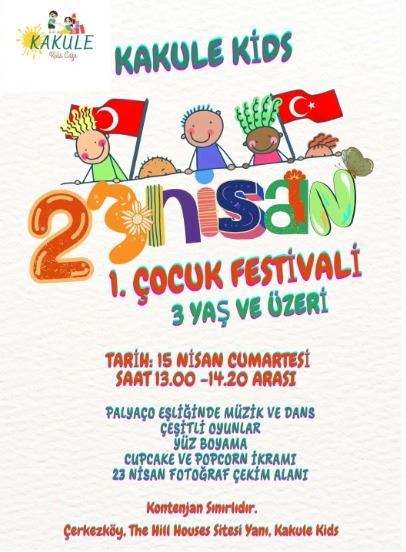 Çerkezköy’ün en nezih çocuk kafelerinden biri olan ve gerçekleştirdiği etkinliklerle minik misafirlerinin gelişimine önemli katkılarda bulunan Kakule Kids Cafe 23 Nisan Ulusal Egemenlik ve Çocuk Bayramı’nı büyük bir coşkuyla kutlamaya hazırlanıyor.