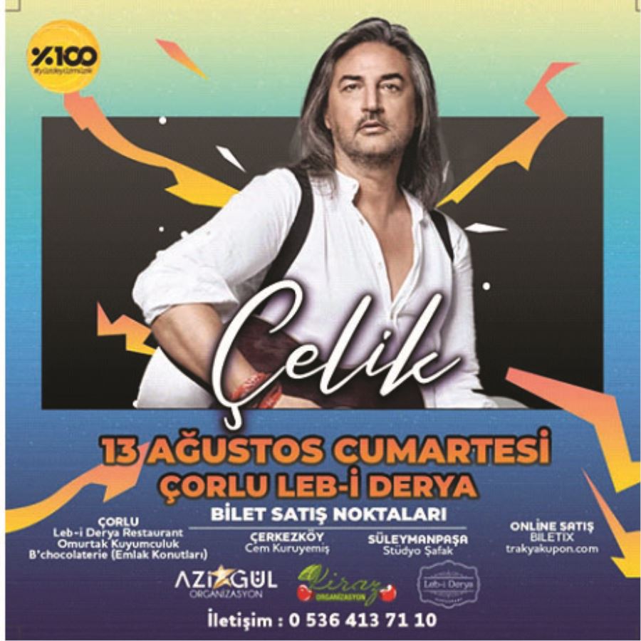 90’lar Türkçe pop müziğinin imza isimlerinden biri olan Çelik 13 Ağustos Cumartesi akşamı Çorlu Leb-i Derya’da sahne alacak.